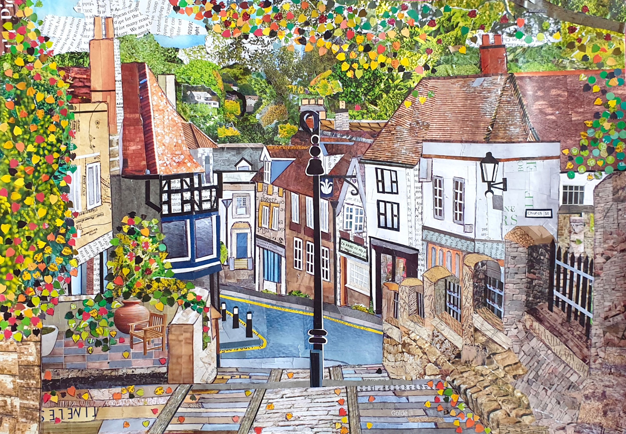 11 framed paintings and 14 unframed original artworks and prints were sold, as well as many printed cards. The Public Vote attracted nearly 200 entries, and the winning work was Violet Von Riot’s collage, entitled ‘Pink Pup’. She was duly awarded the Appleyard Trophy and prize money of £250.